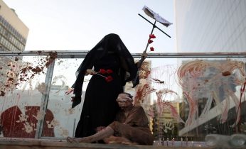 Manifestantes protestam com muita lama em frente à sede da Vale no Rio